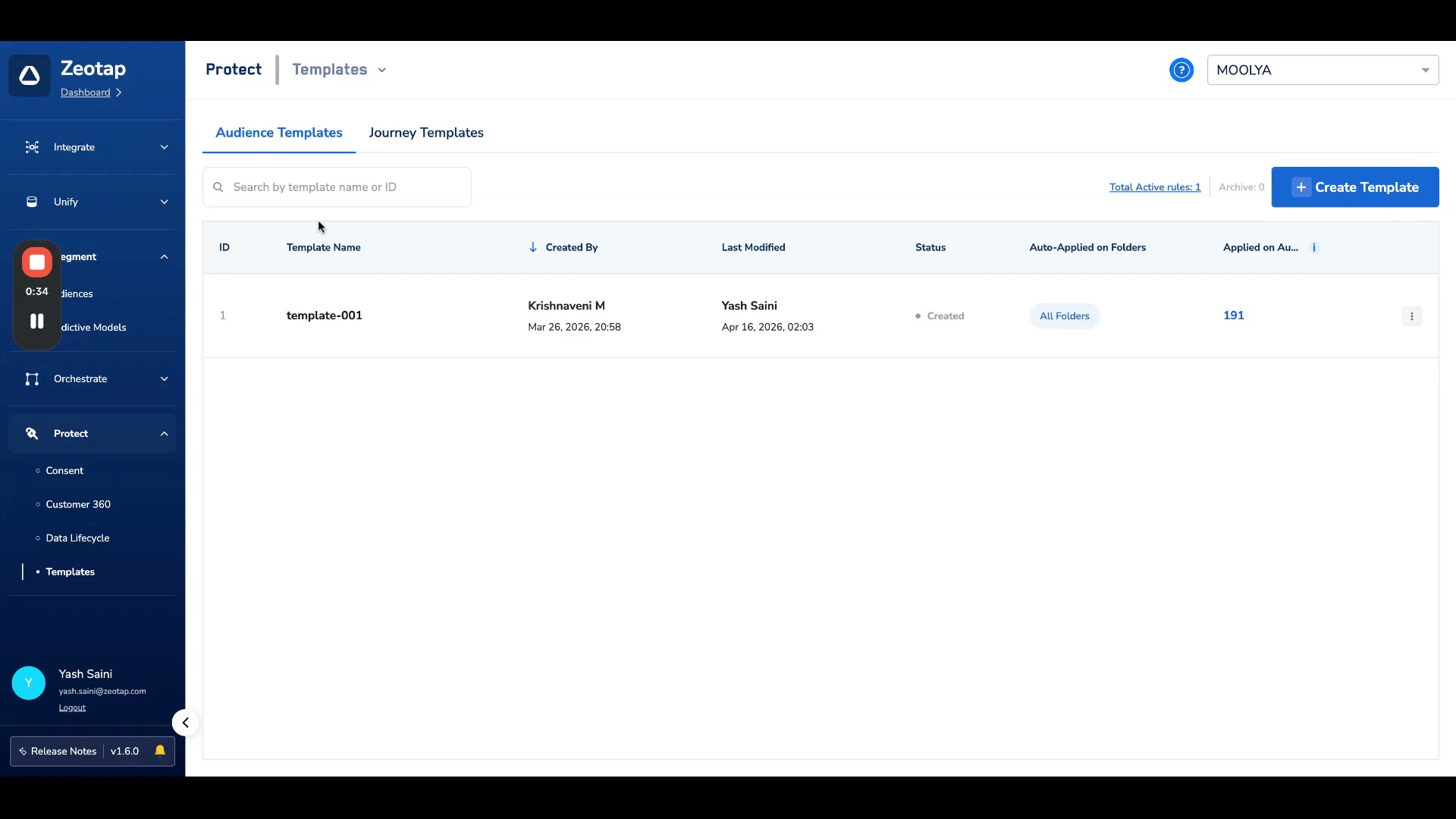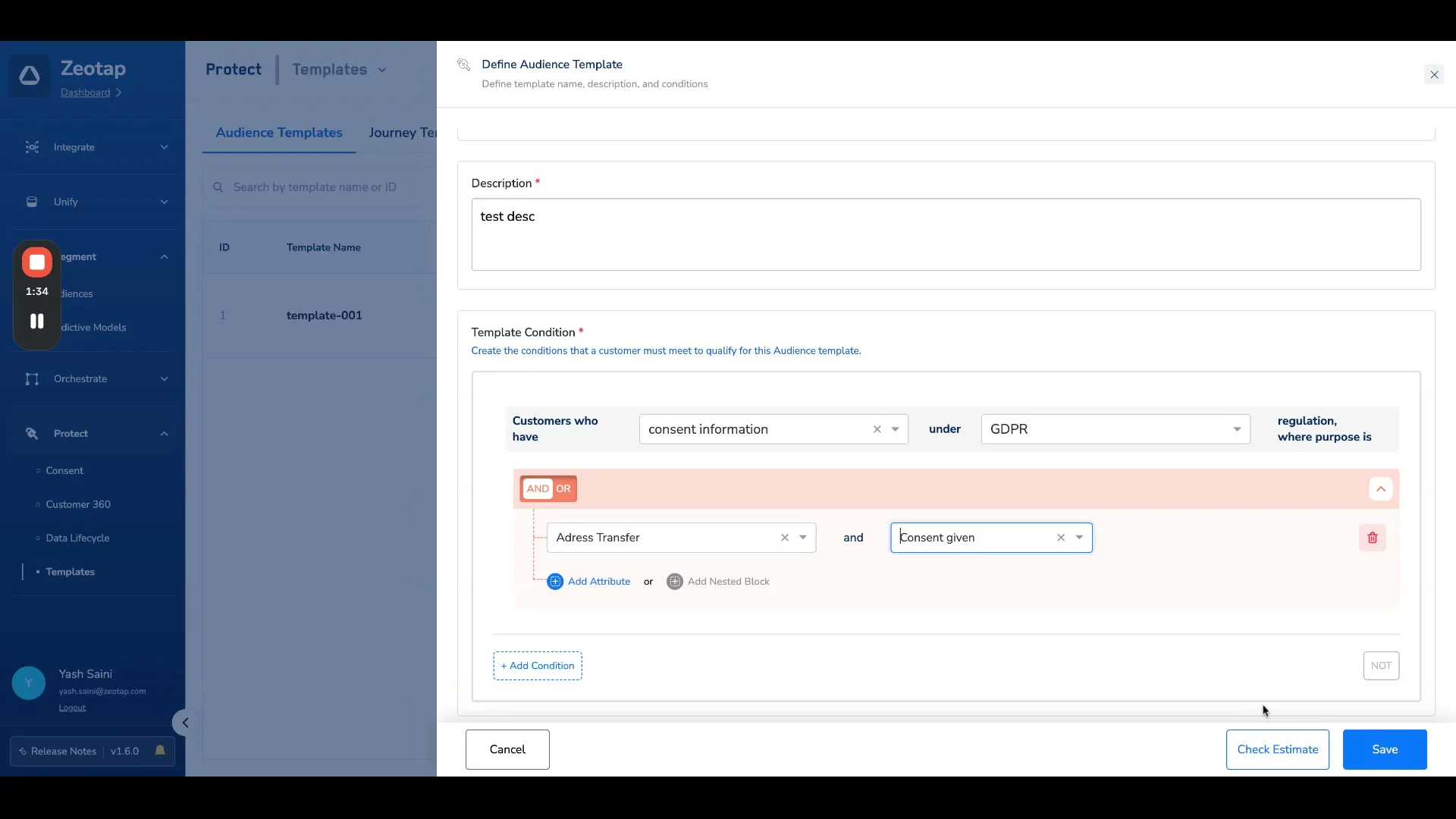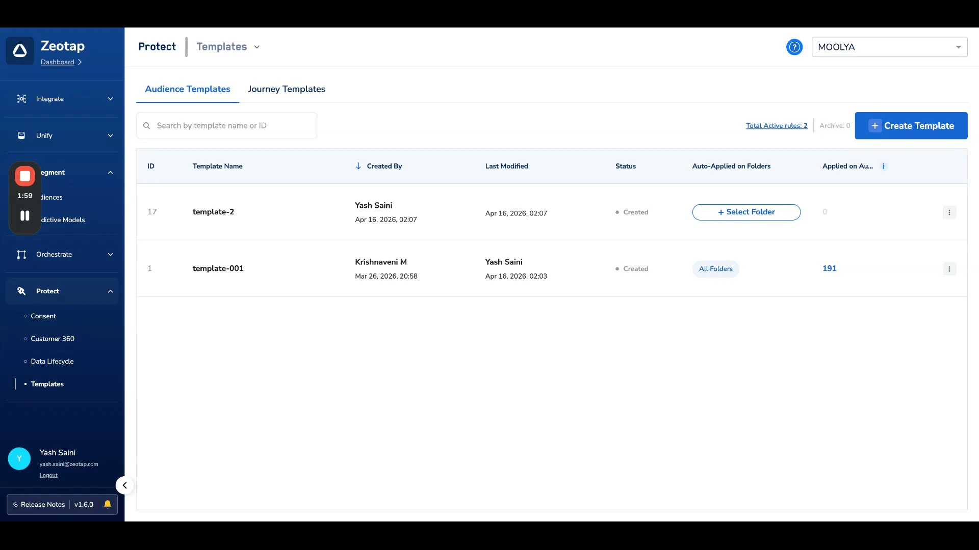 With the introduction of audience templates, the Audience Consent Rule section in the Consent module is being retired. Previously, the Consent module provided an option to create a consent rule that was applied to all audiences from the backend. The same rule can now be replicated as an audience template and applied at the account level, which provides:- More visibility — Template conditions are visible during audience creation, so users can see exactly which rules are being applied.