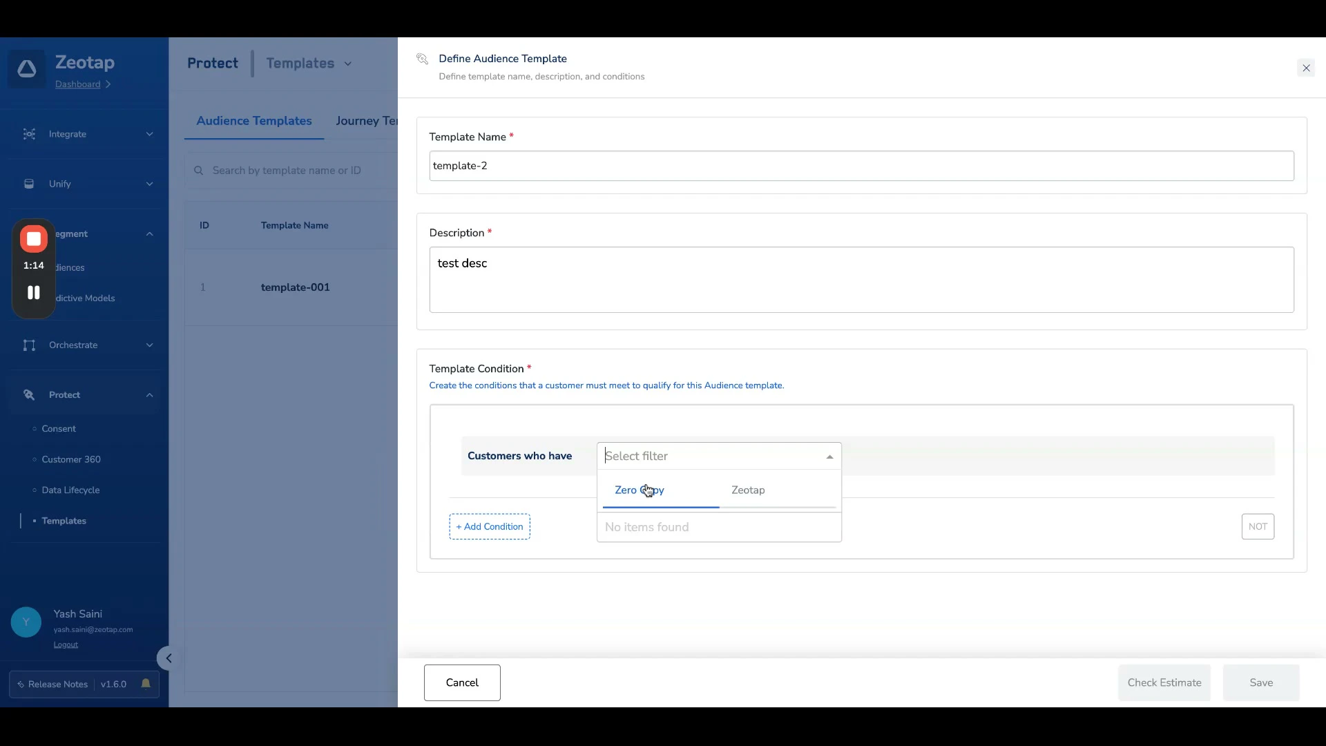 Note:Currently, Real-time Audiences do not support Zero Copy Attributes. Therefore, templates created using Zero Copy Attributes will not be available or applied in Real-time Audiences.